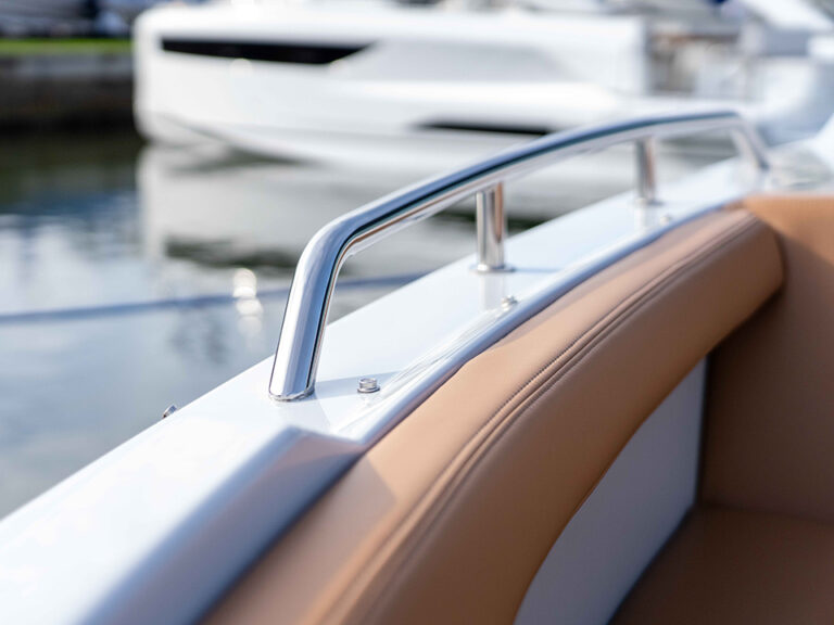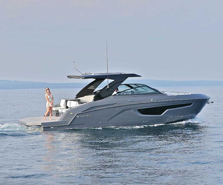The 34 GLS inboard includes open bow seating, a spacious cockpit with a galley, and joystick piloting allowing you to navigate at speeds up to 47 mph. Feel the power and entertain with class in the 34 GLS.