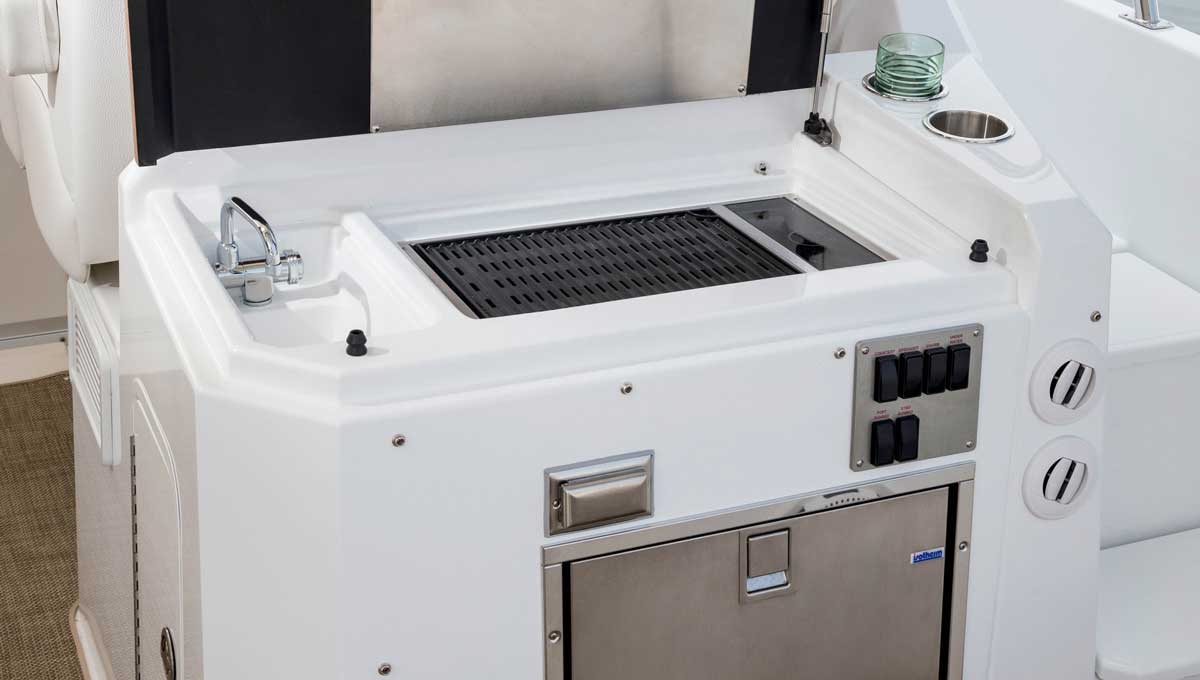 For family cruising or a fun day out on the waves, the 39 EC for sale near you is a no hassle way to make the most of your time on the water. Adjustable seating aboard the 39 EC converts from split L-shaped seating with table, to the ultimate lounger utilizing filler cushions and the reclining transom backrest. Contact your local dealer for a 39 EC on sale near you.