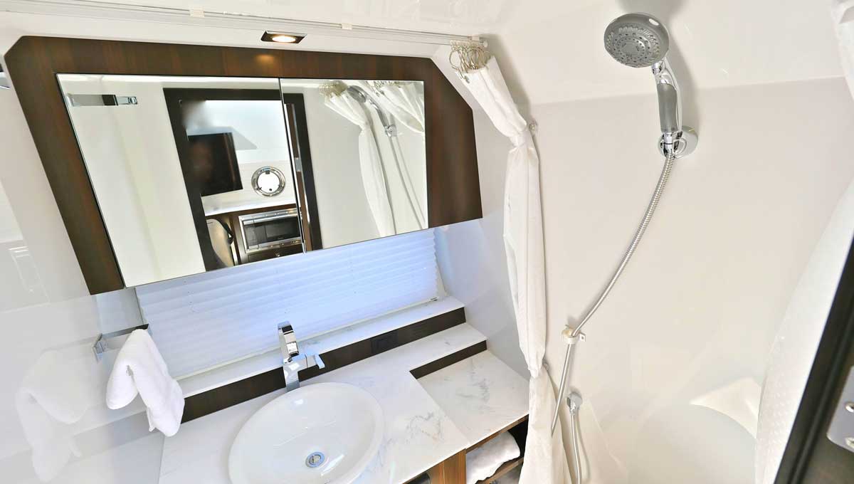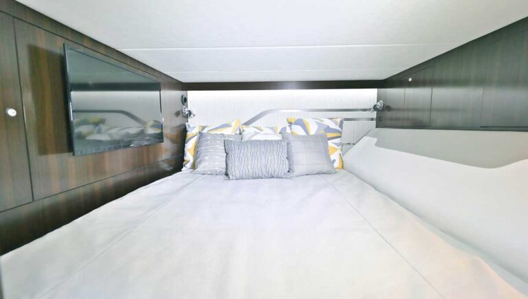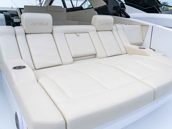 If adventure is your main goal when it comes to boating, look no further than the fast, stylish, and fun 42 GLS OB for sale near you. With dual beach doors, a U-shaped dinette, galley with a raised wet bar, and a spacious bow, the entertainment possibilities are endless. The lower cabin features an aft stateroom and U-shaped dinette that converts into a berth. A full galley and standing head with shower complete this remarkable yacht.